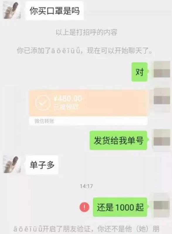 诈骗分子通过社交软件、二手交易网站等渠道发布虚假信息,声称可出售医用口罩、护目镜、酒精、消毒水等防护用品,收到钱后直接开溜。