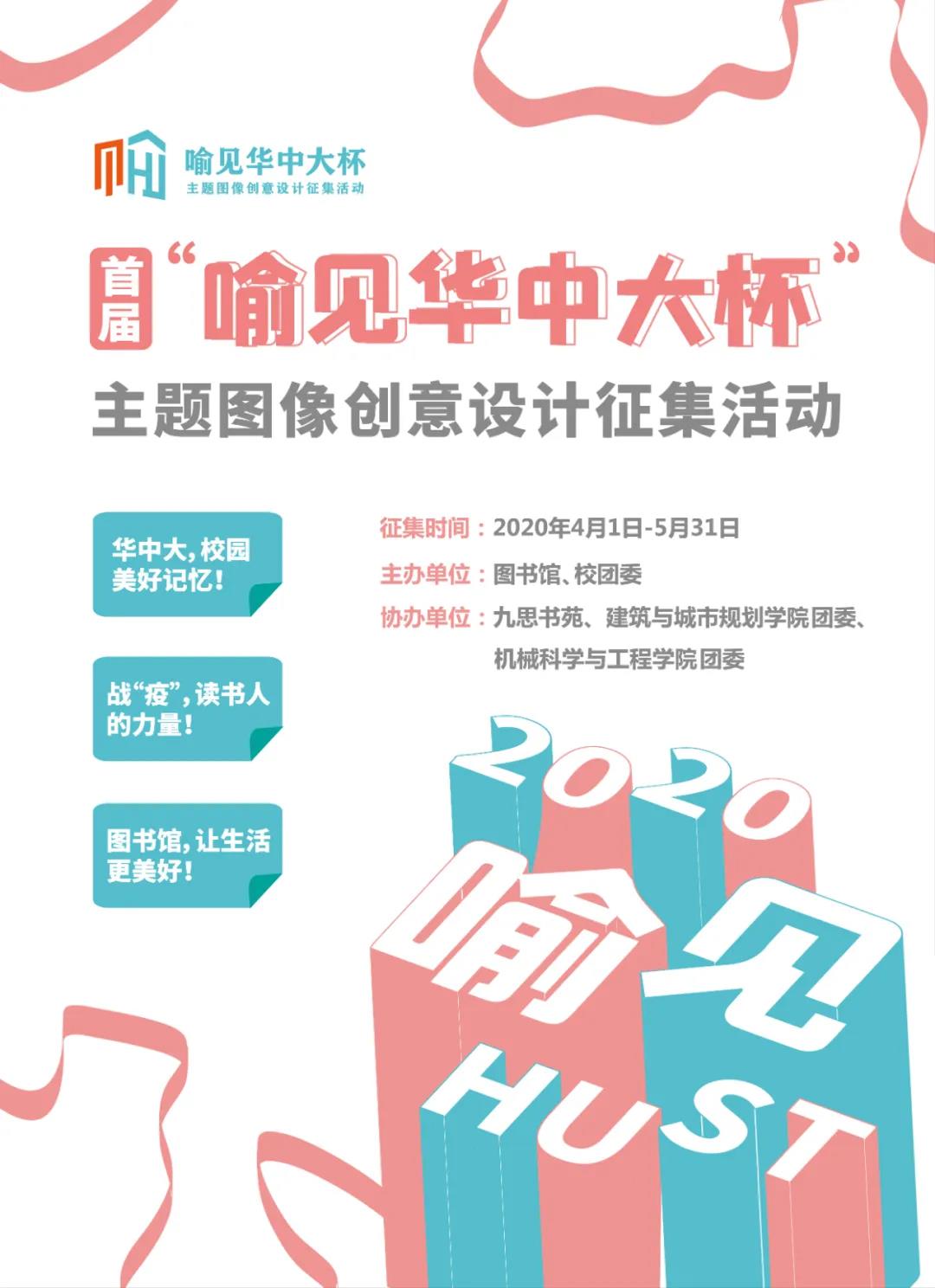 为深入贯彻落实习近平新时代中国特色社会主义思想,坚定文化自信,按照《国务院关于推进文化创意和设计服务与相关产业融合发展的若干意见》有关要求,结合当前抗击新冠肺炎疫情实际,永利3044noc图书馆联合校团委举办首届“喻见华中大杯”主题图像创意设计征集活动,九思书苑、建筑与城市规划公司团委、永利3044noc团委协同开展,大力推进公司全民阅读推广工作。