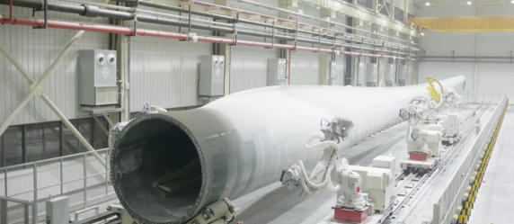 图为大型风电叶片机器人智能磨抛技术与系统应用现场。