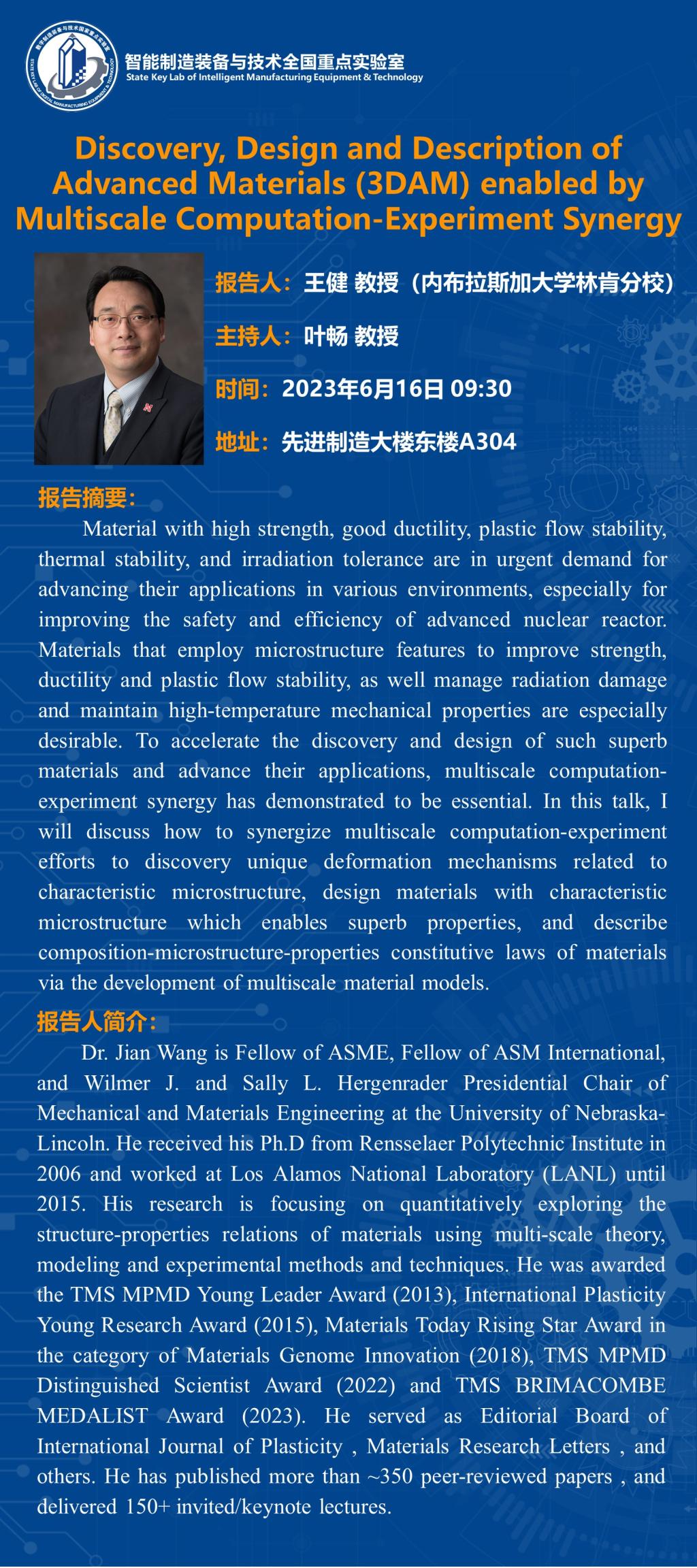 Discovery, Design and Description of Advanced Materials (3DAM) enabled by Multiscale Computation-Experiment Synergy