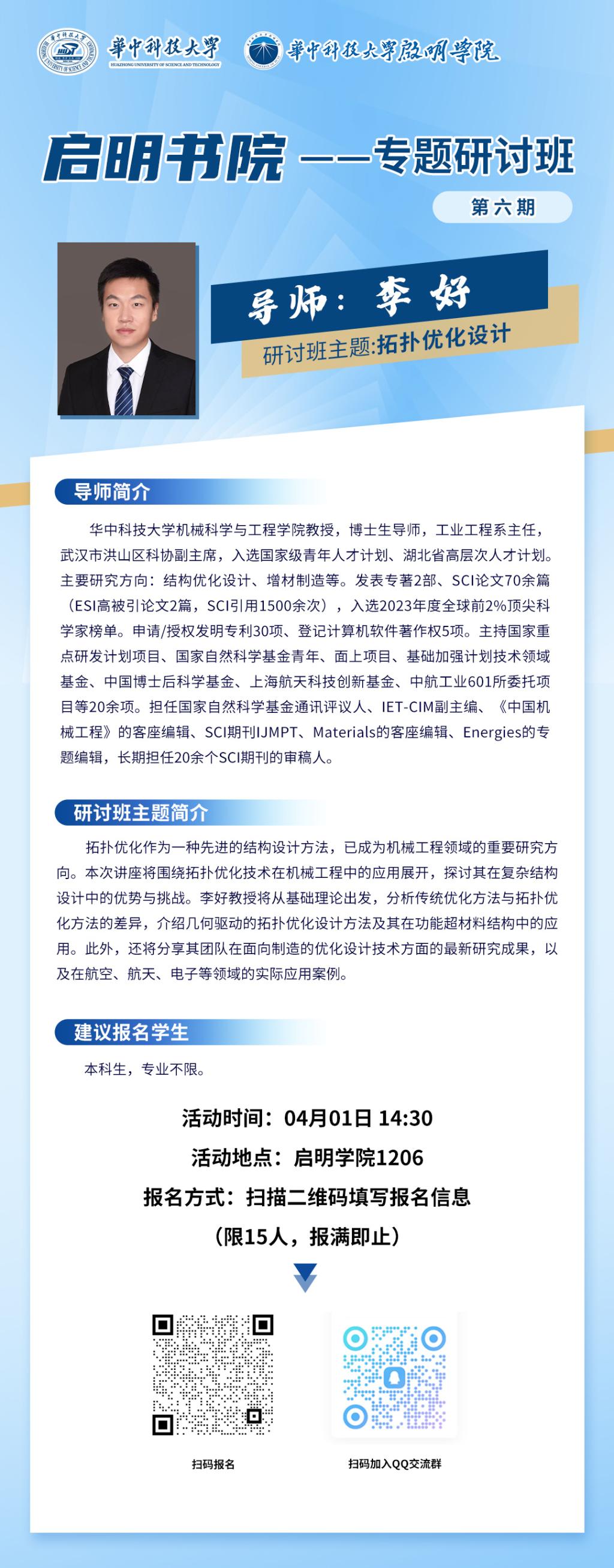 【启明书院——专题研讨班第六期】主题:拓扑优化设计