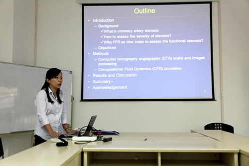 应数字制造装备与技术国家重点实验室吴志刚教授的邀请,公司员工、新加坡心脏研究所高级研究员张俊梅博士来校访问,并于2014年9月24日上午,在先进制造大楼B240会议室为公司师生作“基于CT图像和计算流体力学的非介入式方法在冠心病诊断中的应用”专题学术报告。