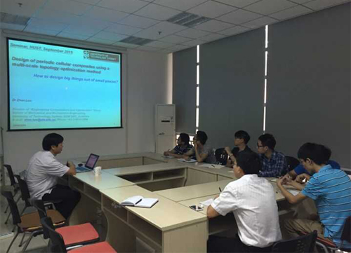 2015年9月24日,应高亮教授邀请,悉尼科技大学的罗震博士来公司数字制造装备与技术国家重点实验室进行学术交流访问,并作题为“Design of periodic cellular composites using a multi-scale topology optimization method”的专题报告。