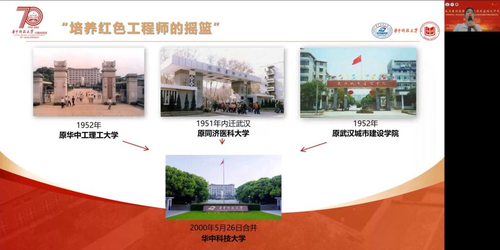 华中大研究生红色理论学讲团讲师喻文婷同志带来《华中大建筑中的红色记忆》校史宣讲。她从中轴线上的守望——毛泽东像,到“英雄的学长”——黄群像,到“青年的榜样”——胡吉伟像,再到“治学的楷模”——裘法祖像进行了介绍,带领我们云游了华中大的红色建筑,这些建筑见证了公司从无到有,由弱到强的奋进史。见证了一代代华中大人自强不息,爱校荣校的拼搏史;汇聚着与新中国同呼吸共命运、与共和国同频共振的红色基因;凝聚着一代代华中大人爱国荣校的献身精神,值得华中大的每一个你我共同传承。