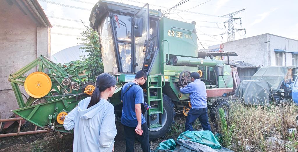 机手杜爷爷向队员们演示农机的工作过程,讲解工作原理。他表示,抢收时节下雨会导致小麦倒伏、发芽,既阻碍机械化收割,又降低小麦的质量。实践队注意到一些农村缺乏对机手的培训,从而机手的安全得不到保障。此外,杜爷爷只在小麦抢收的时节担任机手,其余时间需要另找工作,这无形中使机手的压力增大。