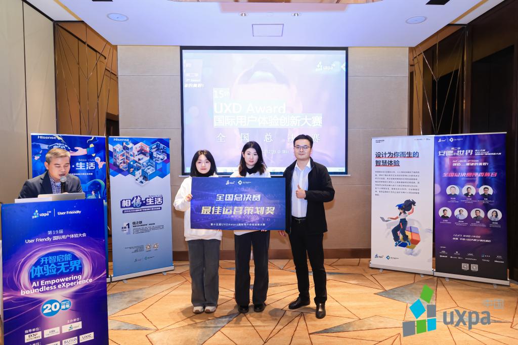 12月27日,由UXPA中国主办的“第十五届UXDA国际用户体验创新大赛全国总决赛暨颁奖典礼”在深圳京基100大厦圆满收官。大赛于2023年5月启动,整个赛程耗时近八个月,来自大陆、港澳台及海外160余所高校的500余支参赛团队经过三轮赛程的激烈角逐,最终27支优秀作品脱颖而出,成功晋级本次全国总决赛答辩。公司产品设计专业学子王思嘉、李雨萁、张宏钰、徐倩、夏域坤在工业设计系副教授龙韧的指导下,参赛作品“爷爷吹的糖——基于人工智能的天门糖塑非遗文化创新体验服务设计”斩获全国二等奖以及“最佳运营策划奖”。