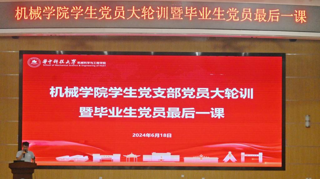 首先,尹周平为全体毕业生党员讲授主题党课《奋力培育发展新质生产力,为高水平科技自立自强作出华科大贡献》。尹周平从新质生产力的内核,如何发展新质生产力,聚焦新产业新赛道等方面,详细讲解新质生产力的内涵奥义,为同学们指明未来发展方向。他寄语同学们,在毕业后的新征程上顶天立地、追求卓越,不负时代、不负华年,为中国式现代化贡献更多华科大机械力量。