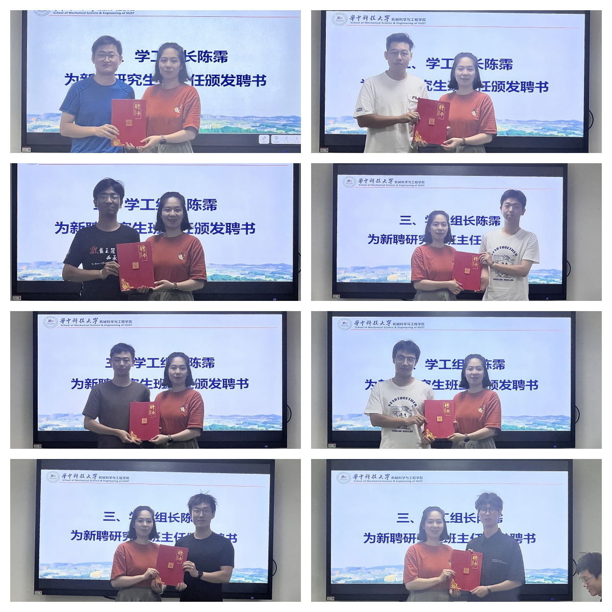 最后,陈霈为新聘2024级研究生班主任颁发聘书。会后,研究生班主任们还意犹未尽地讨论工作推进方案。当晚,多名研究生班主任前往新生宿舍,关心军训归来的新生,与同学们敞开心扉交谈。