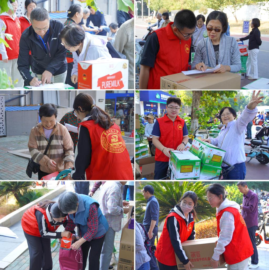 早上8:30,公司为老同志准备的慰问品先后送达喻园小区、西边高层,公司老协李爱文老师安排各单位联系人依次开始分发。为了做好本次慰问品的发放工作,学工组专门安排了多名志愿者同学协助发放,受到退休老师们的欢迎和好评。公司党委副书记张绍浩、老协主席袁楚明亲临现场,询问老同志们有何困难和需求,并表示公司永远是他们的坚强后盾。