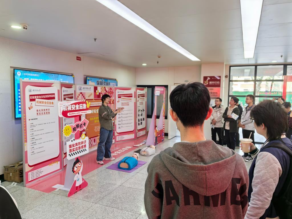 本次活动公司实设处特别邀请了从业急救行业15年,有着丰富急救实战经验的傅建萍老师来为广大师生手把手地传授安全应急知识。不同于安全理论知识培训,本次活动的重点在于贴近大机械类工科实验室实际急救需求,注重实操。让同学们有机会自己动手摸一摸,试一试各类急救器材。