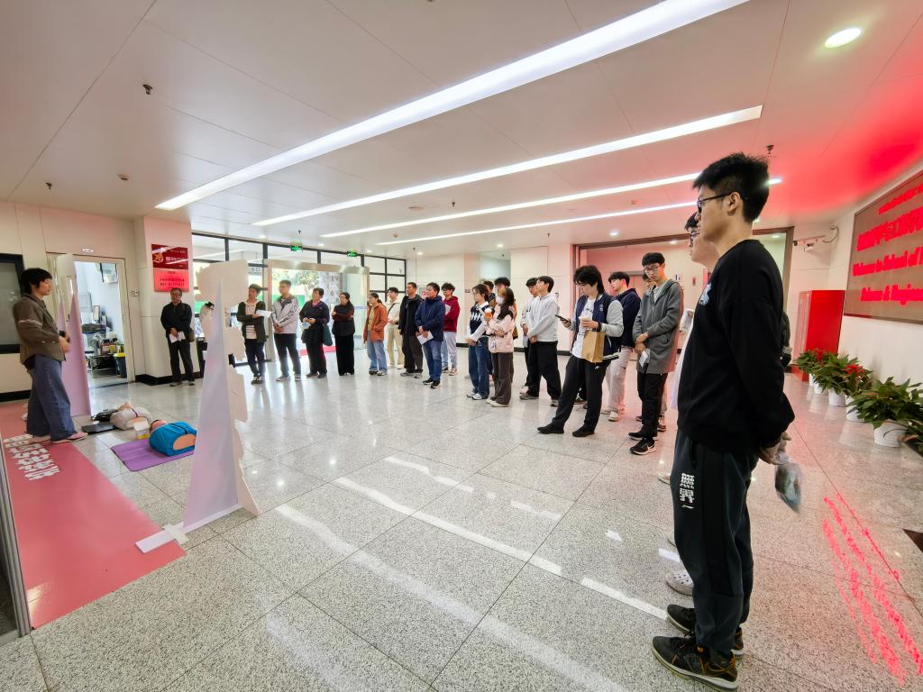 活动的最后一个环节是这次体验的重头戏。这个部分老师重点介绍了心肺复苏术和体外除颤器的使用方法。正确的掌握心肺复苏术和体外除颤机AED能够在紧急情况下挽救一个人的生命,因此在抢救过程中有许多细微的操作需要格外注意。为了达到更好的培训效果,老师边讲解边请同学上来实操。同学们兴致勃勃地对现场的假人进行了心脏复苏操作和体外除颤器AED的使用。有了这次操作的实际体验,以后遇到类似的紧急情况时,大家才能有条不紊的处理。