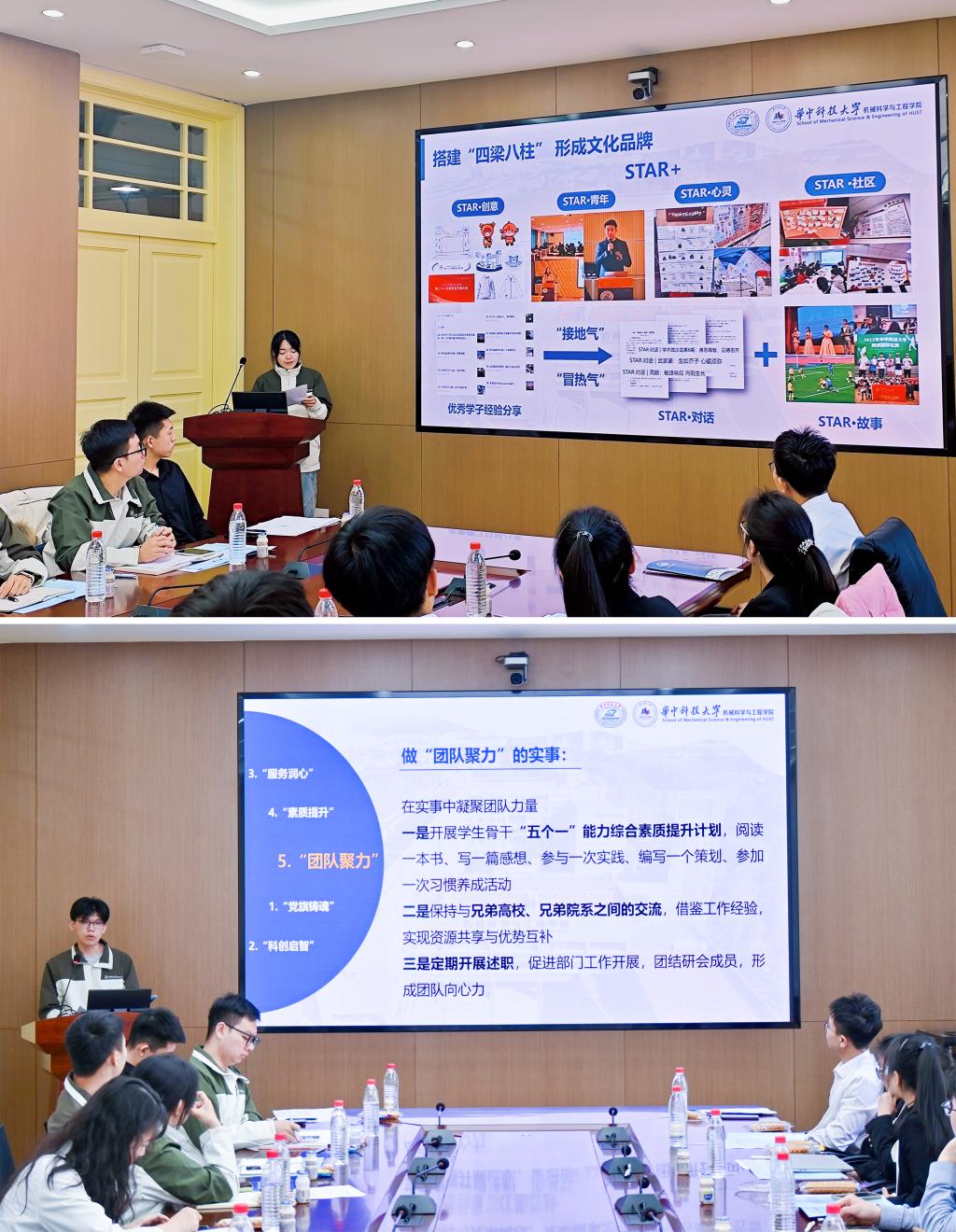 公司研究生会主席团成员李雨萁从“重建设、有内涵”“搭平台、有品质”“创品牌、有行动”“懂同学、有温暖”四方面详细介绍了公司研究生会的工作经验。坚持党旗领航,巩固研究生会改革发展;积极开展学术、文体、生活健康活动;探索品牌建设,赓续公司“STAR”文化;服务同员工活、实践、发展需求,为同学做实事一直是公司研究生会的工作思路;公司研究生会主席团成员程锐就如何服务同学需求、如何培养青年政治骨干、如何融入公司工作大局三个角度,从“党旗铸魂”“科创启智”“服务润心”“素质提升”“团队聚力”五方面展开介绍。以“一精神 一文化 一要求”为工作目标,努力成为想做事、能做事、做成事的机械研究生会。