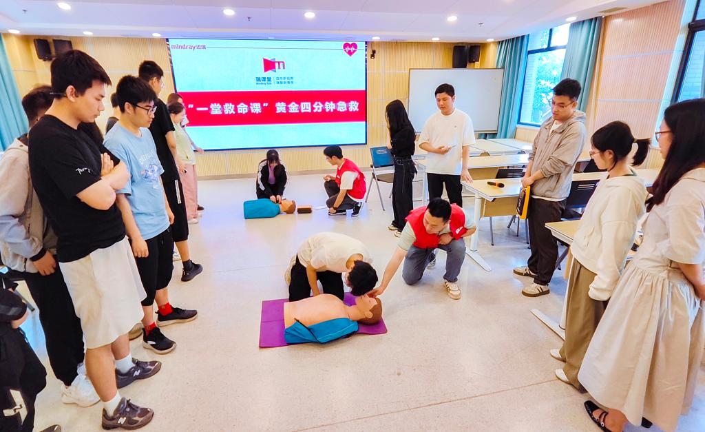 4月18日,公司联合迈瑞医疗于机械大楼A304教室内联合举办了一场关于心脏骤停急救知识的专题宣讲会,邀请迈瑞AED用服工程师、AHA急救员及培训导师罗梦桥以“‘一堂救命课’黄金四分钟急救”为主题展开宣讲与培训,通过权威数据解读、国际案例分析和实操培训演示,提升师生对心脏骤停的认知,推广心肺复苏(CPR)和自动体外除颤器(AED)的使用方法,为校园安全构筑一道坚实的防线。