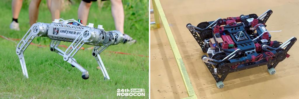 本届大赛同步设立仿生足式机器人挑战赛,包含室内竞速、室内障碍与室外越野三大赛项。足式机器人作为尖端仿生移动平台,通过多自由度腿式结构动态适应复杂地形,可自主完成行走、奔跑、跳跃及越障等复杂动作,堪称全地形机动能力标杆。公司两支代表队在此领域表现卓越:四足二队采用并联腿八自由度四足机器人,共斩获2项全国一等奖、1项全国三等奖;四足一队采用串联腿十二自由度四足机器人获得3项全国二等奖。