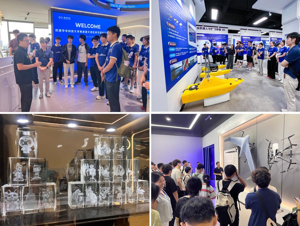 不同于传统课堂的理论讲授,将“教材”搬到企业车间、高校实验室。学子们在逸动科技(华科员工企业),听联合创始人兼 CTO 万小康分享“智能电动船设备如何响应‘双碳’战略”,理解科研选题需紧扣国家需求;在广东省智能机器人研究院,看到事业单位企业化管理如何孵化产学研项目,明白科技成果转化需要打破学科壁垒。这种现场教学让学子们意识到,科研不是象牙塔内的空想,而是要扎根产业痛点、解决实际问题——正如在大族激光看到激光打标技术在食品包装、汽车制造中的应用,在高巨创新见证无人机编队表演如何赋能文旅产业,每一处场景都在传递“科研要服务社会”的核心逻辑。