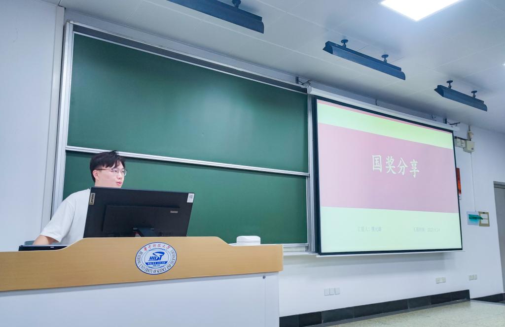2022级本科生熊元卿分享了获得本科生国家奖学金经验。在课内学业方面,他建议同学们都应拥有追求卓越的自我驱动力,培养自主学习能力;谈及科研与竞赛,他强调,需要具有跨界融合的宏观视野与持之以恒的坚韧品格,才能在科研之路上走得远、行得稳。