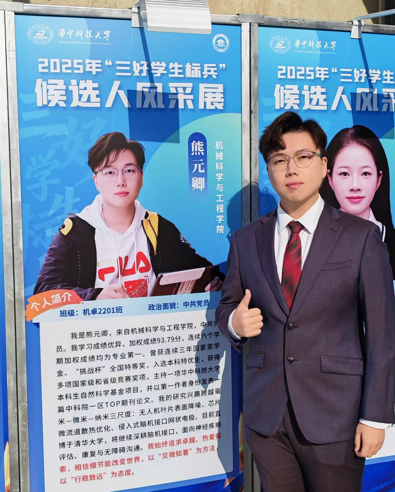 未来,熊元卿将继续在脑机接口领域探索,并以‘追求卓越、细节改变世界’为座右铭,从所学到所为,把机械精神写进更高水平的自立自强,为建设科技强国贡献华科大机械青年的力量。