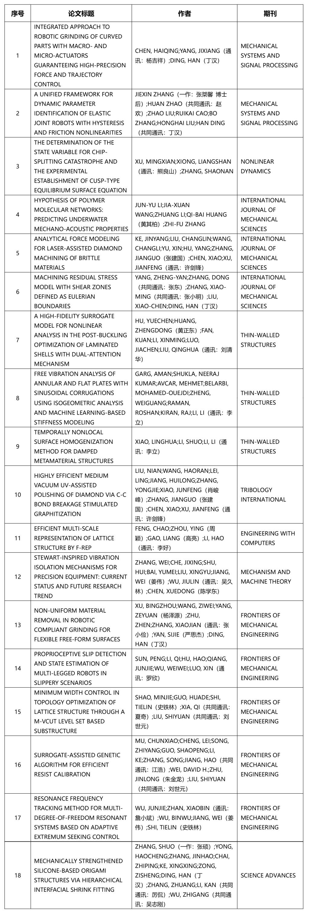 2025年9至10月,公司教师在“机械工程学科国际重要期刊”共计发表(以WOS正式出版日期为准)论文24篇,其中以公司(含全重等)为第一单位发表论文18篇(如下表):