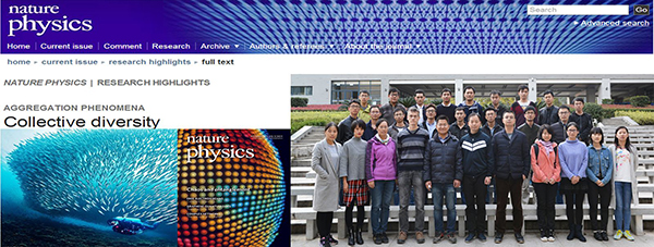 日前,国际权威学术杂志Nature Physics(自然-物理学)以研究亮点(Research Highlight)(DOI:10.1038/nphys3960, NaturePhysics 12, 299, 2016; http://www.nature.com/nphys/journal/v12/n11/full/nphys3960.html)图文报导了数字制造装备余技术国家重点实验室张海涛教授课题组在自然界群集动力学系统构型相变领域的理论研究成果(Pattern phasetransitions of self-propelled particles: gases, crystals, liquids, and mills)。张海涛教授为该成果的唯一通信作者,其他作者依次为:程钊(一作)、陈智勇、T. Vicsek、陈都鑫。本工作得到了国基金重大国际合作项目(51120155001)的资助,主持人为丁汉院士。该团队也入选了华中科大学术前沿青年团队(攀登计划)。