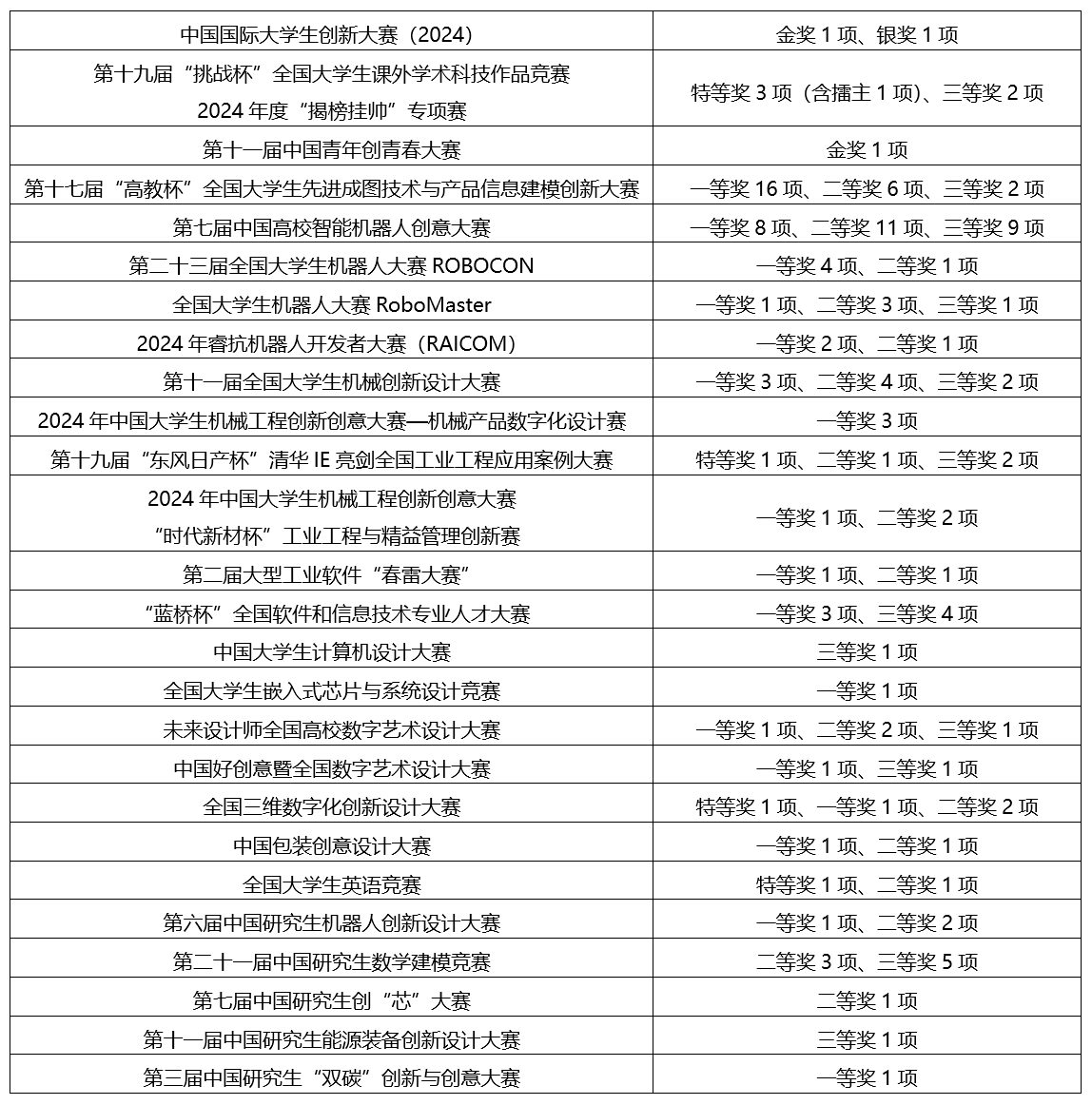 2024年,机械学子在各类创新创业大赛、学科竞赛中,用专业本领和青春热血努力书写青年有为、机械有为的时代答卷,共获省级以上奖项372项,覆盖1000余人次,其中,国家级一等奖及以上57项,“创新大赛”“挑战杯”“创青春”三大顶级A类赛事国家级奖项8项;老员工创新创业项目立项89项,获批国家级项目12项、省级项目38项;本科生以第一作者发表SCI/EI论文5篇,授权发明专利1项。